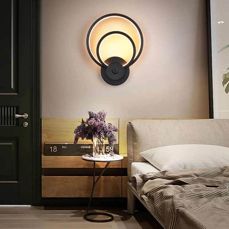 Estetica pulita: Il design minimalista della nostra lampada da parete Double Circle si adatta a ogni tipo di arredamento. Che il vostro stile sia moderno, classico o contemporaneo, si integra armoniosamente nello spazio diventando un elemento centrale. La sua eleganza risiede nella semplicità. Attira l'attenzione senza sforzo e crea un'atmosfera raffinata.