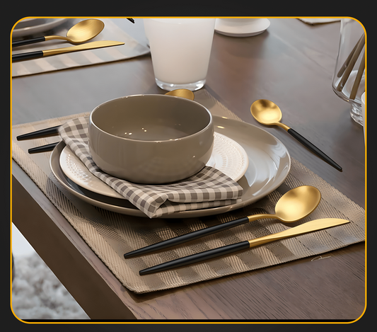 RoyalServe - Czarny Złoty Zestaw Sztućców dla Czterech Osób